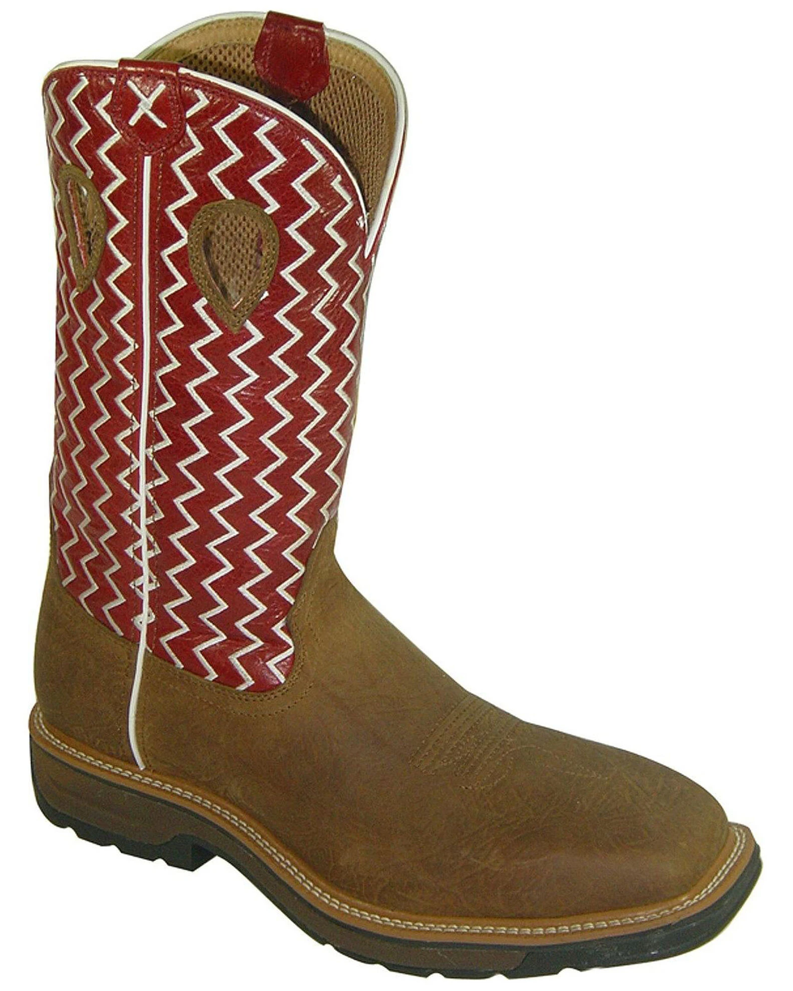 These square steel toe, all leather boots from Twisted X feature a low profile that looks just like an original cowboy boot. These Work Boots feature oil and slip resistant rubber outsole. These boots are made to hold together and perform, Twisted X is confident that this is the best overall work boot package; you’ve got better things to worry about than feet. “Keep them doggies smilin; just pull ‘em on and leave em’ on.”