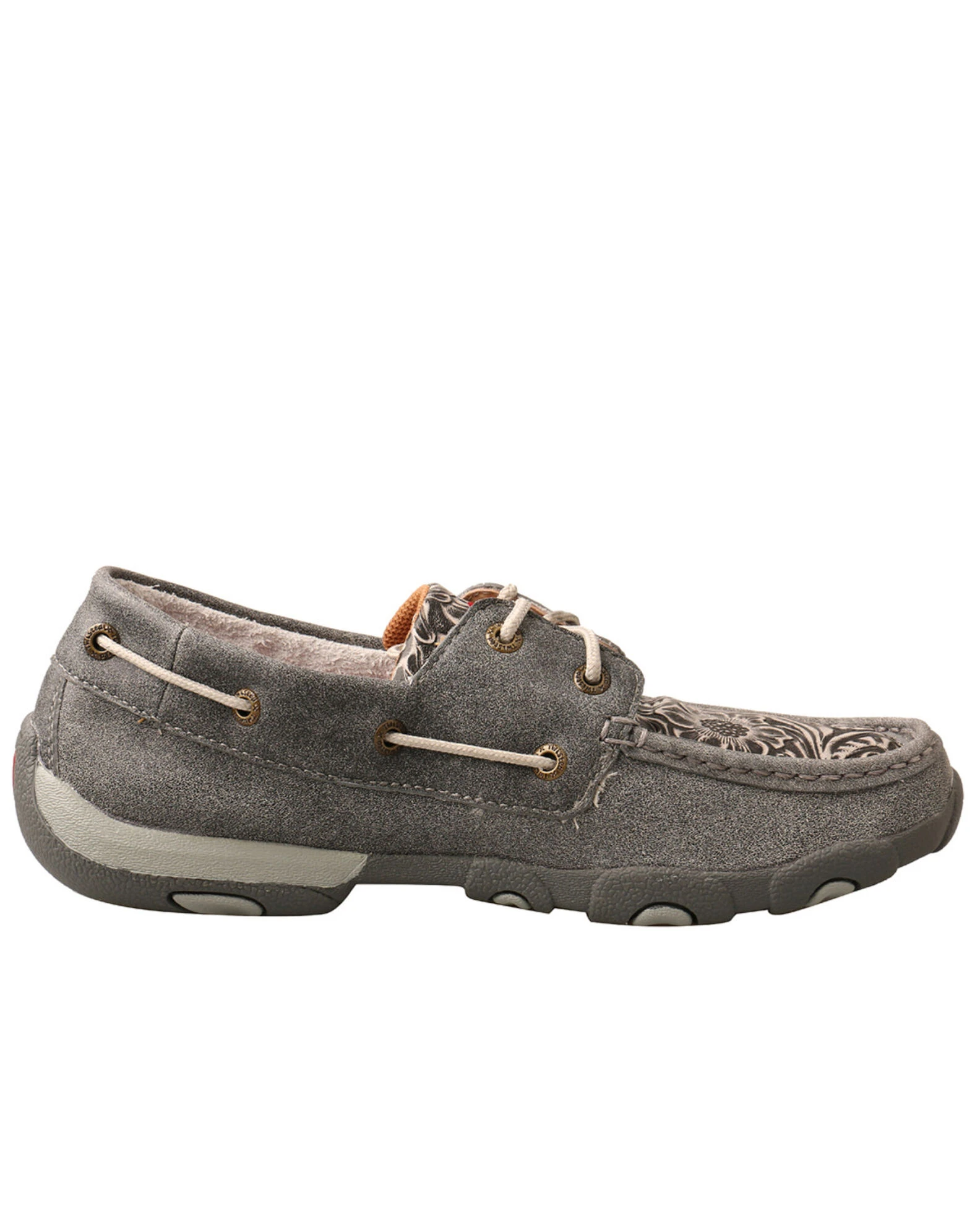 Twisted X Women’s Tooled Boat Shoes – Moc Toe Grey